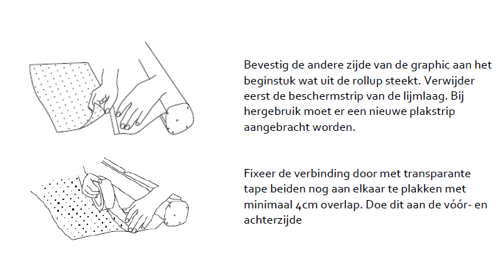 De dubbelzijdige roll up banner is geschikt om mensen kennis te laten maken met het bedrijf van jouw klant, acties of evenementen aan te prijzen, informatie te verstrekken en te presenteren. De dubbelzijdige roll up banner bevat twee doeken die eenvoudig aan een stok bevestigd worden. Met dit product kan je ervoor kiezen om twee verschillende prints te laten zien. Ideaal als de roll-up banner in het midden van een ruimte staat en/of mensen er omheen kunnen lopen. Verkrijgbaar als complete set, losse print of cassette. Keuze uit 4 soorten materialen Kies uit: Banner 510, Airtex, Sanotex en zwart wit banner. Deze zijn te verkrijgen in de formaten 85 cm of 100 cm. Geleverd met transporttas De dubbelzijdige roll up banner wordt geleverd in een handige transporttas zodat je klant deze eenvoudig en compact mee kan nemen.